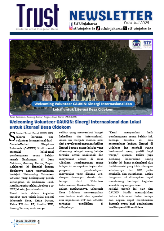 Beranda Berita NEWSLETTER TRUST edisi Juli 2025 BeritaNewsletter Trust NEWSLETTER TRUST edisi Juli 2025 Penulis Social Trust Fund UIN Jakarta - 6 Oktober 2025 28 Facebook Twitter Google+ Pinterest WhatsApp Newsletter Trust edisi Juli 2025 bisa diunduh selengkapnya melaui link dibawah ini : Newsletter Trust edisi Juli 2025 BERITA TERKAITDARI PENULIS Agenda WELCOMING AWARDEE BEASISWA STF UIN JAKARTA: PEMBINAAN PERDANA TEKANKAN PENTINGNYA PENGEMBANGAN DIRI Berita STF UIN Jakarta: Bukan Sekadar Beasiswa, Tapi Juga Ruang Berorganisasi Berita Mahasiswa KKN STF UIN Jakarta Gelar “Charity Goes to School” di SDN 02 Cempaka Putih LEAVE A REPLY Batal balasan Please enter your comment! Please enter your name here You have entered an incorrect email address! Please enter your email address here Save my name, email, and website in this browser for the next time I comment. Δ Laporan Penghimpunan Laporan Penghimpunan Pembangunan Saung Belajar Cercondeso Social Trust Fund UIN Jakarta - 22 September 2025 Newsletter Trust
