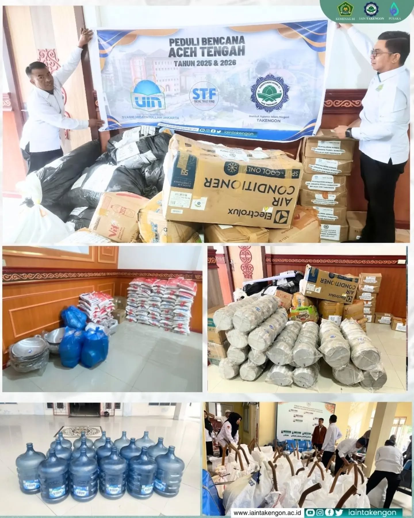 Jakarta, Berita UIN Online — Sebagai bentuk komitmen kepedulian terhadap masyarakat terdampak bencana alam, UIN Syarif Hidayatullah Jakarta menyalurkan bantuan kemanusiaan bagi korban bencana di sejumlah wilayah Sumatera. Penyaluran bantuan dilakukan melalui Social Trust Fund (STF), lembaga kemanusiaan UIN Jakarta, dengan menggandeng tiga perguruan tinggi keagamaan negeri mitra, yakni IAIN Takengon (Aceh Tengah), IAIN Mandailing Natal (Sumatera Utara), dan UIN Sjech M. Djamil Djambek Bukittinggi (Sumatera Barat).