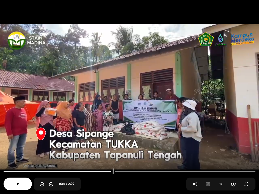 Di Kabupaten Tapanuli Tengah, Sumatera Utara, bantuan kemanusiaan disalurkan melalui IAIN Mandailing Natal kepada masyarakat terdampak banjir di Desa Sipange dan Desa Hutanabolon, Kecamatan Tukka, pada Jumat, (9/01/26).