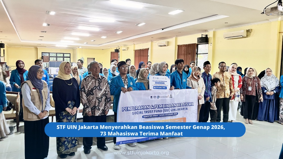 Aula Madya, UIN Jakarta — Social Trust Fund (STF) UIN Syarif Hidayatullah Jakarta kembali menegaskan komitmennya dalam mendukung keberlanjutan pendidikan mahasiswa melalui penyerahan beasiswa tahun 2026 yang berlangsung di Aula Madya, Rabu (15/04/2026).