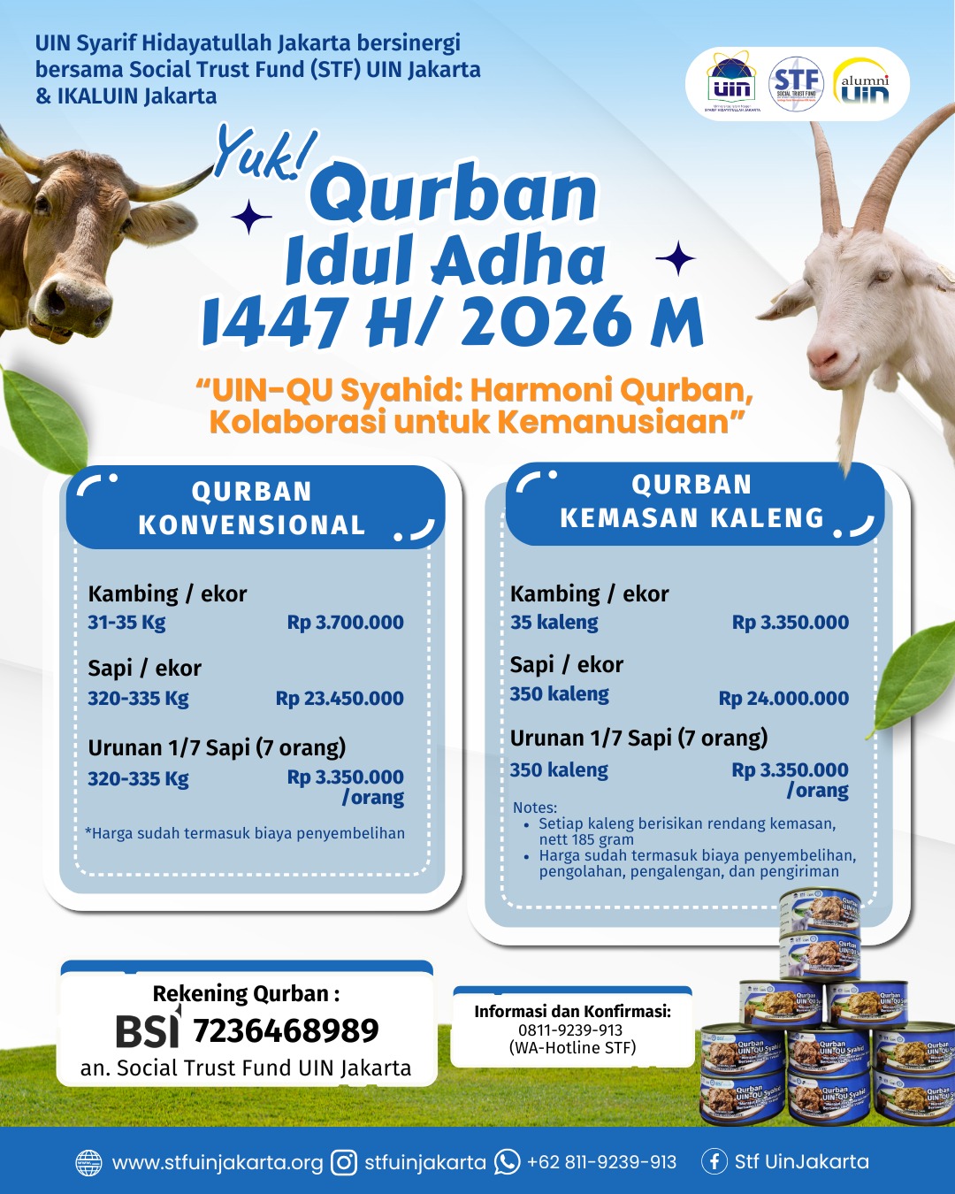 Melalui program UIN-QU Syahid 2026, STF berharap semangat berbagi di Hari Raya Idul Adha dapat menjangkau lebih banyak penerima manfaat, sekaligus memperkuat solidaritas sosial dan nilai kemanusiaan.