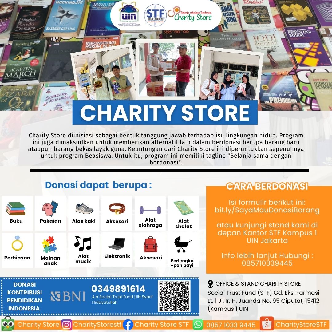 Charity Store diinisiasi sebagai bentuk tangggung jawab terhadap isu lingkungan hidup. Program ini juga dimaksudkan untuk memberikan alternatif lain dalam berdonasi berupa barang baru ataupun barang bekas layak guna. Keuntungan dari Charity Store ini diperuntukkan sepenuhnya untuk program Beasiswa Social Trust Fund.
